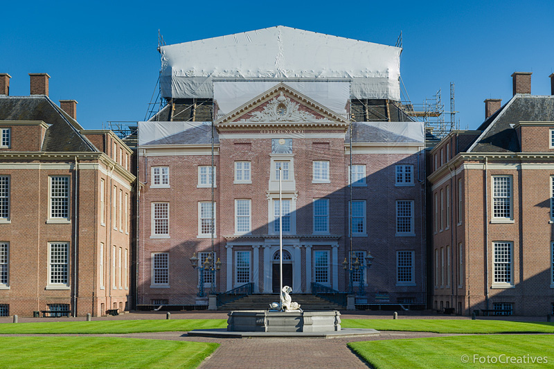 In opdracht van Paleis ’t Loo moest ik onlangs een foto maken van het centrale gedeelte van het paleis. Op zich niet zo heel bijzonder maar toen kreeg ik te horen dat het een grote foto moest worden. Ik moest even slikken toe ze zeiden dat de foto maar liefst 30 meter breed en 20 meter hoog hoog zou worden!!! Oeps, das best groot!